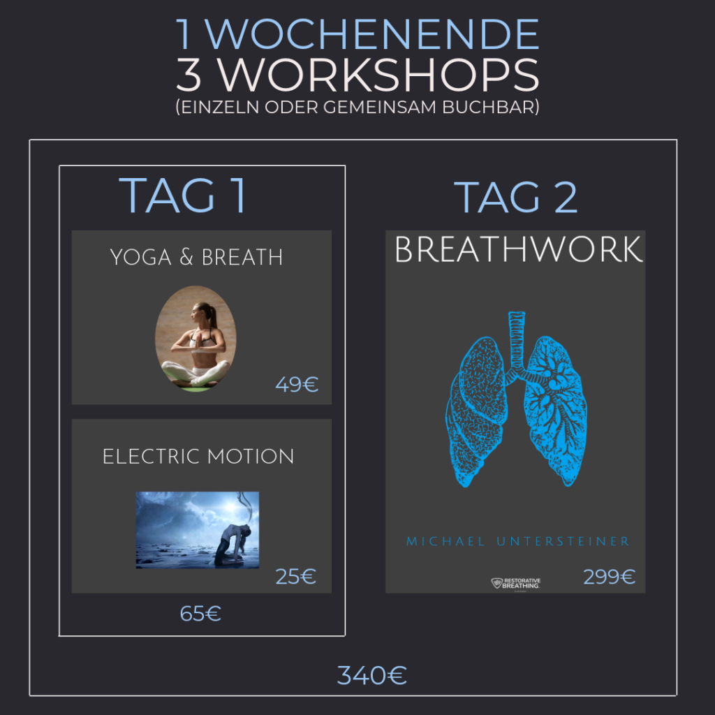- ELECTRIC MOTION (Sa. 14:00 – 15:30) Eine transformative Atemreise, um Blockaden zu lösen und tief ins eigene Unterbewusstsein einzusteigen.