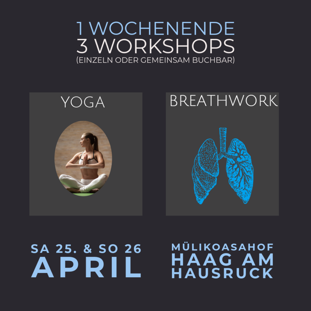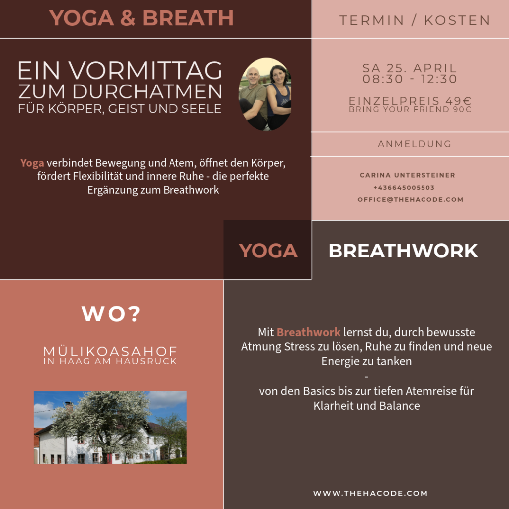 - YOGA & BREATH (Sa. 08:30 – 12:30) Der perfekte Mix aus Bewegung und Atmung für einen klaren Kopf.